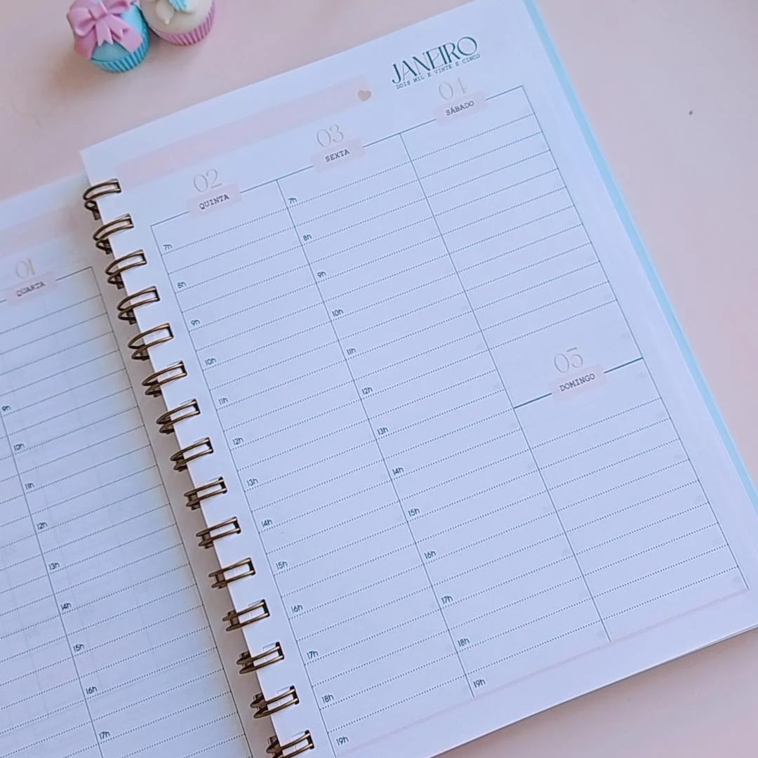 AGENDA COM A VISÃO DA SEMANA DIVIDIDA EM DUAS PÁGINAS