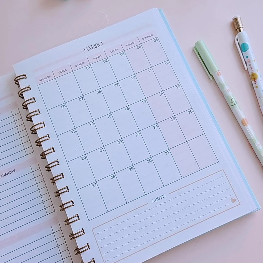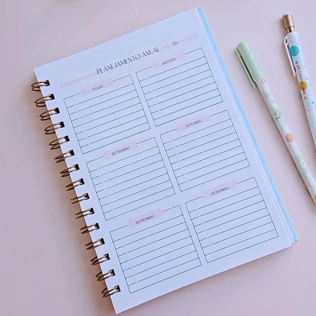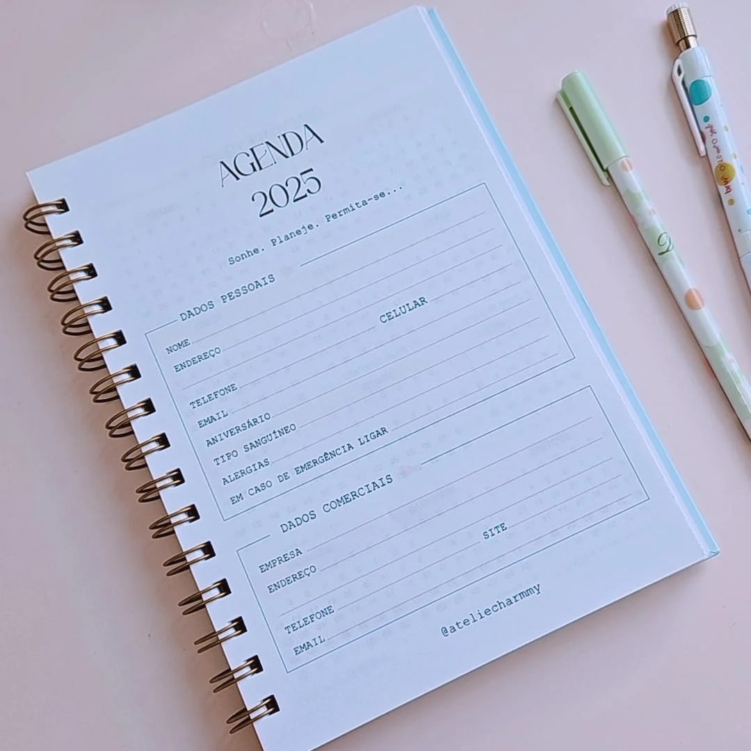 Agenda Personalizada 2025 com encadernação em Wire-o.