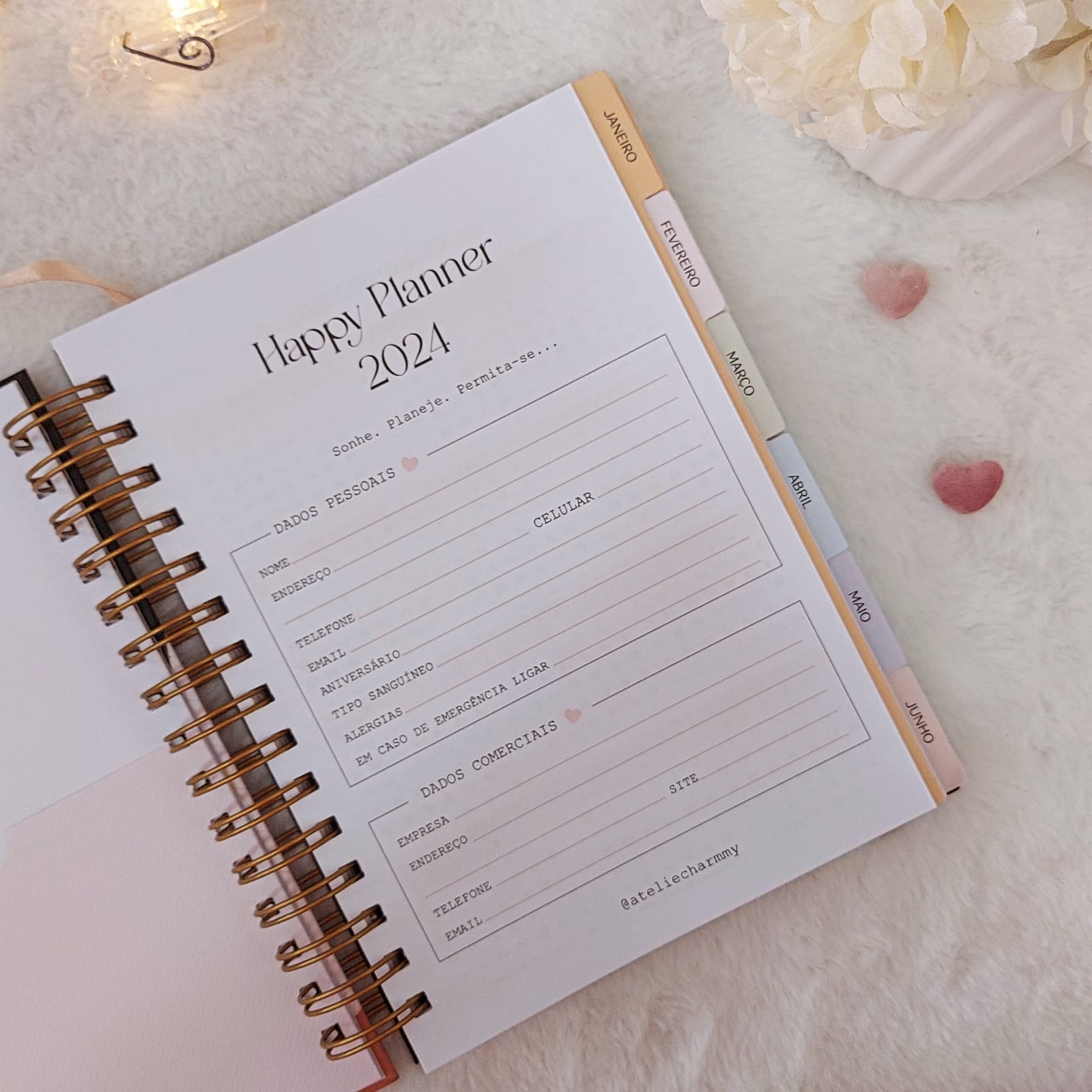 Happy Planner Personalizada 2024 com encadernação em Wire-o.