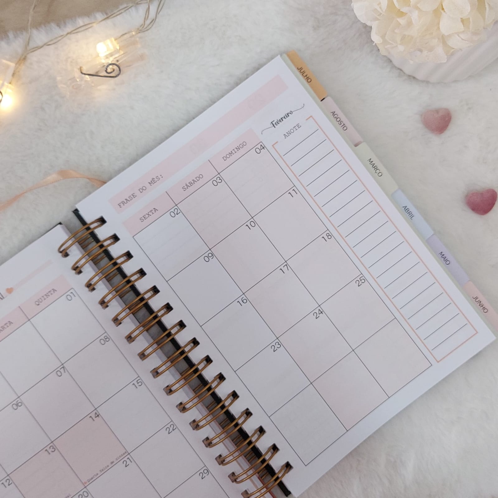 – Planejamento mensal com espaços para anotações