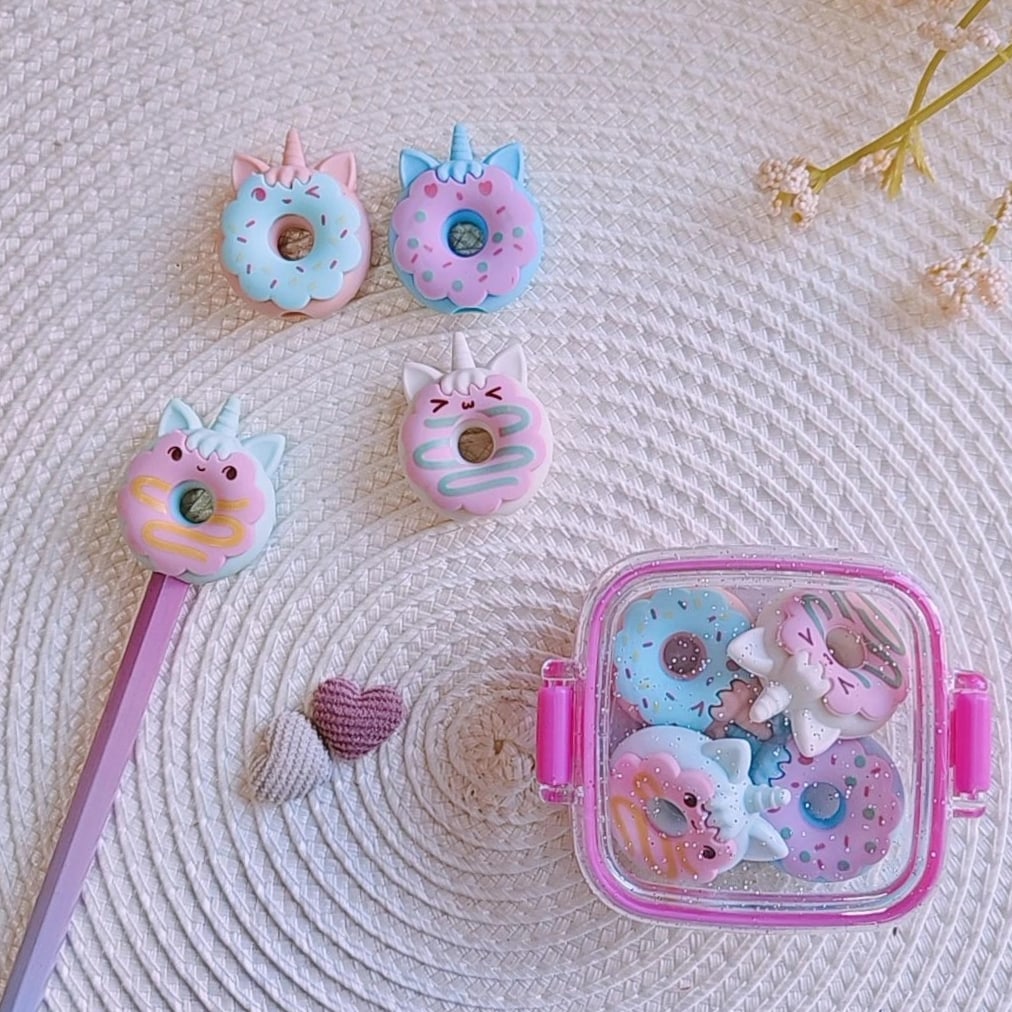 O kit de borrachas contem 4 unidades com ponteira para lapis!