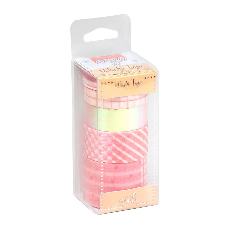 O kit contém 6 washi tapes em tamanhos variados com cores suaves, delicadas e bem fofas!