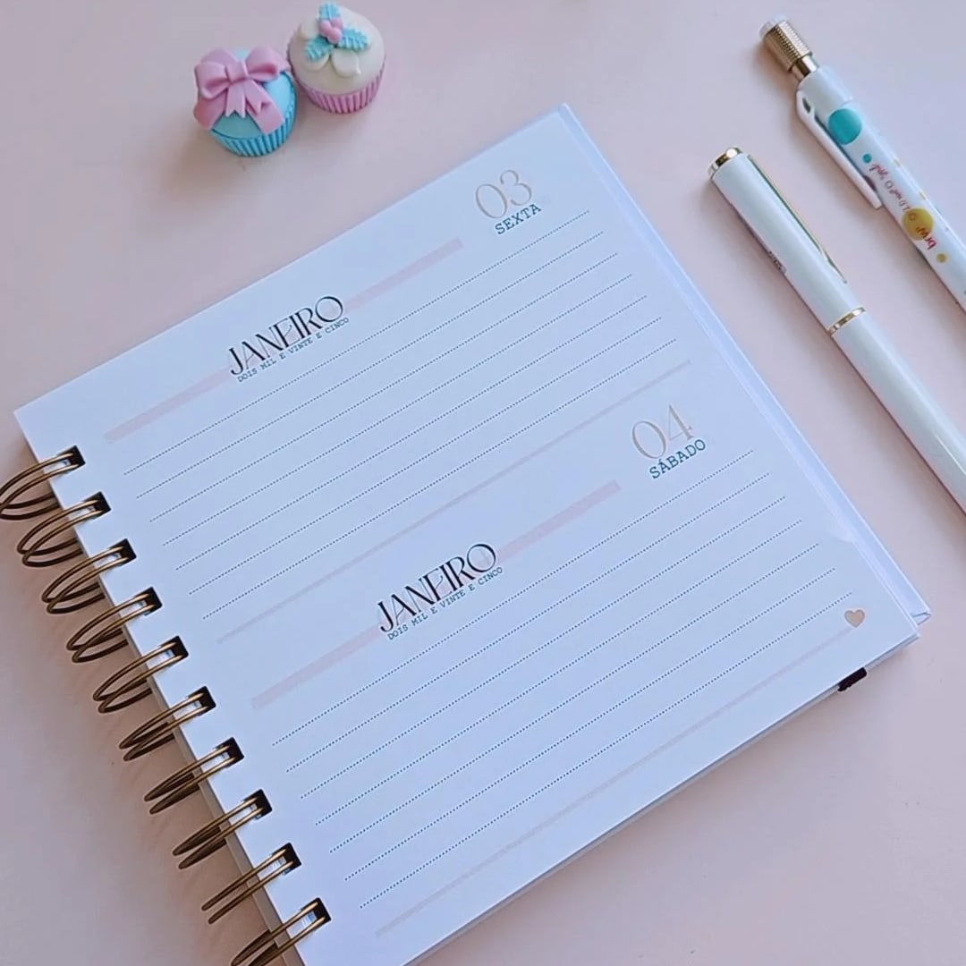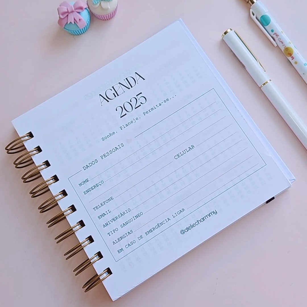 Agenda Personalizada 2025 com encadernação em Wire-o.