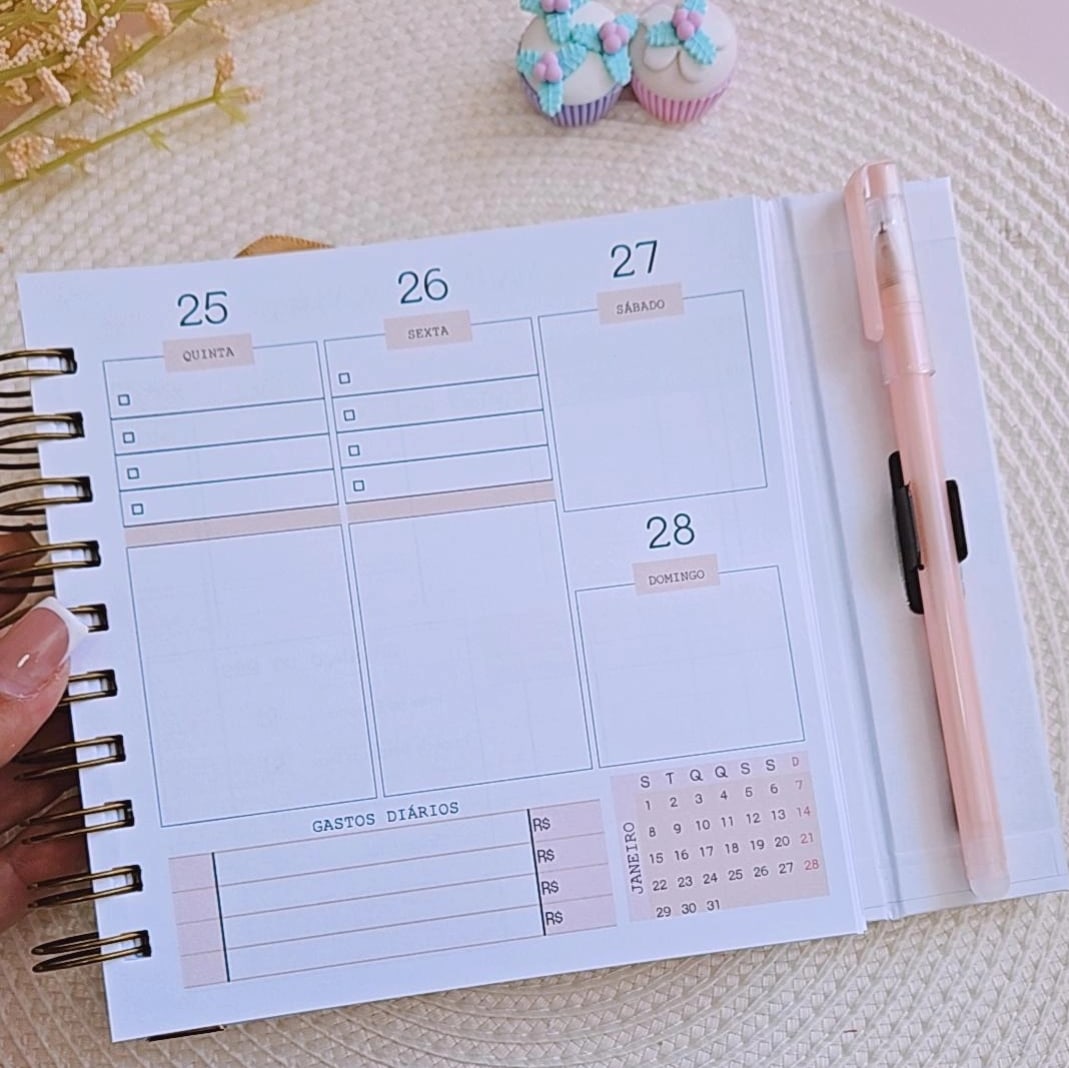 Mini Charmmy Planner Personalizada 2024 com encadernação em Wire-o.